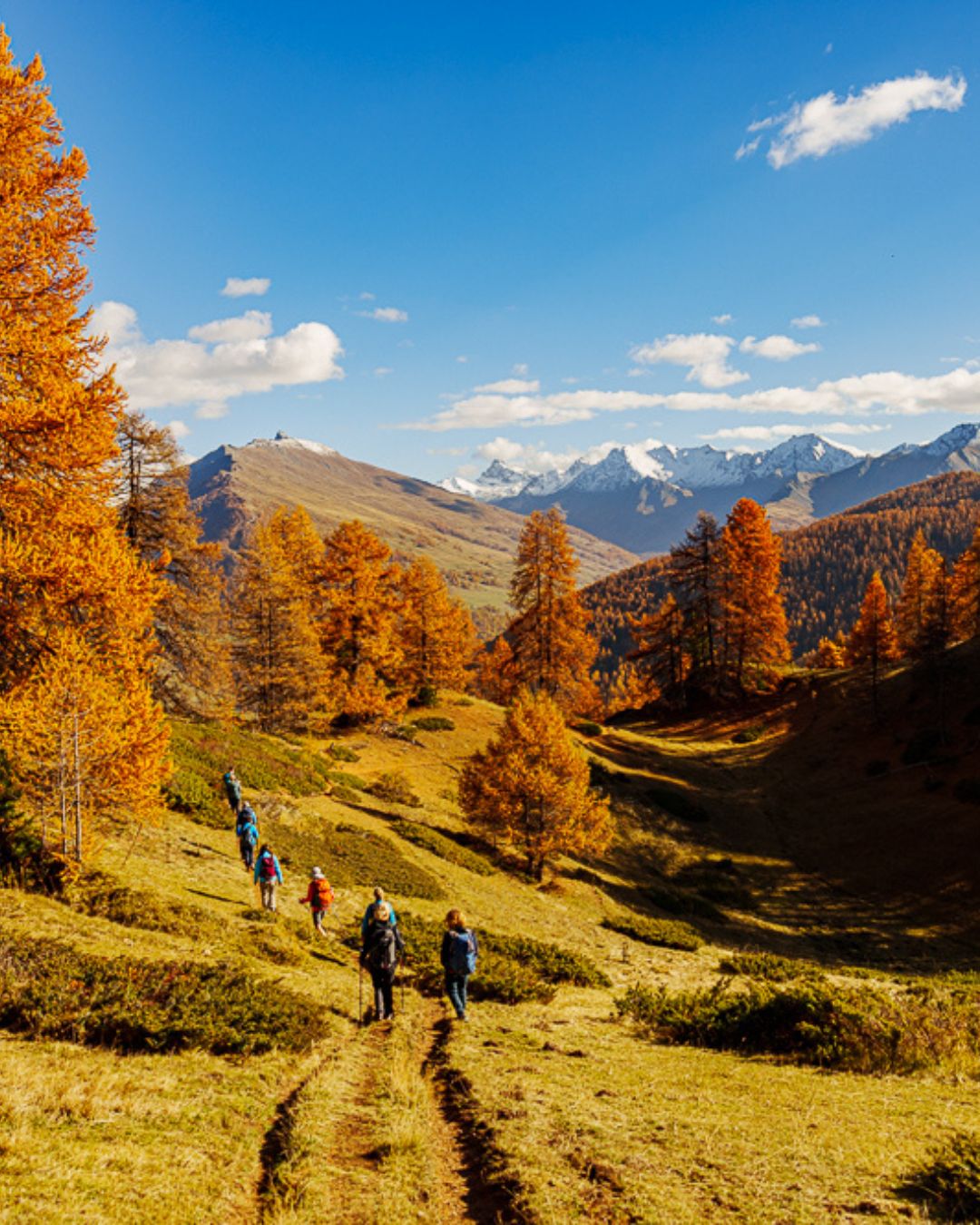 L’aventure se déroule à l’automne, quand le Queyras passe en mode or massif : les mélèzes deviennent dorés, les troupeaux redescendent, les sentiers se vident, et la montagne retrouve son rythme naturel. On marche plusieurs jours en immersion, de vallons en crêtes, avec des bivouacs et des villages d’altitude comme points d’ancrage.